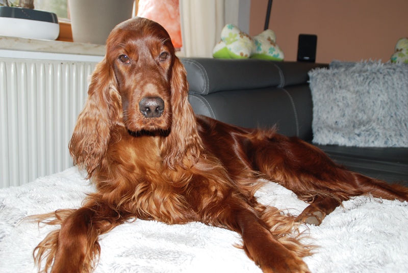 Im Mai 2012 zog auch noch Enya`s Tochter Glory bei uns ein. Danach folgten Irish Setter Hündin Jana, eine Tochter von Gladys, sie lebt mit Gordon Setter Hündin Funny; eine Tochter von Crazy bei unsrer Tochter Liesa.